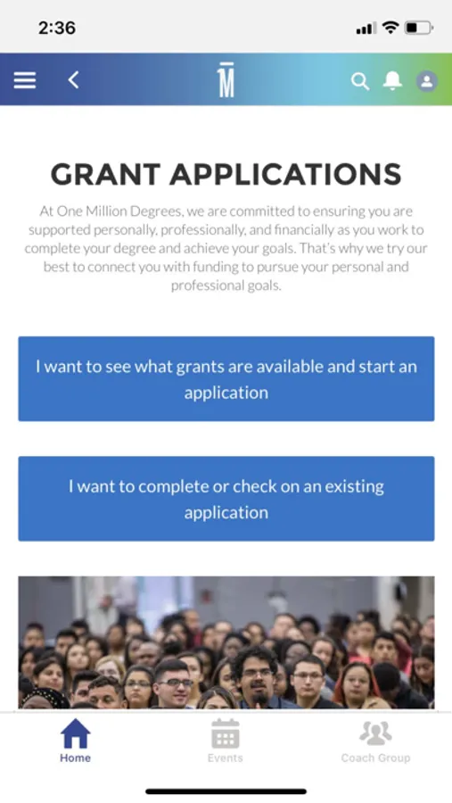 OMD coaches and scholars can use the One Million Degrees mobile app for access to key updates, event notifications, personalized program information, and more!