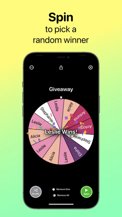 Want to pick a winner at random by spinning a wheel? This is the app for you! Use this simple app to pick a winner, save a screenshot of the results, and share it to social media. If you want to spin a wheel during a live video chat, you can even flip the screen so that your viewers can read the wheel when you hold up your device to the webcam!