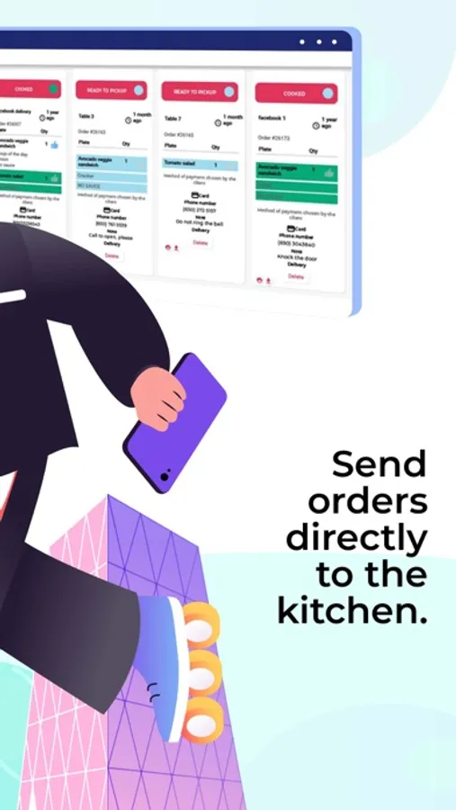 Your waiters can go through the places of their customers, pick up orders and payments quickly and send orders directly to the kitchen without having to walk long distances, the orders arrive directly to the kitchen Displays