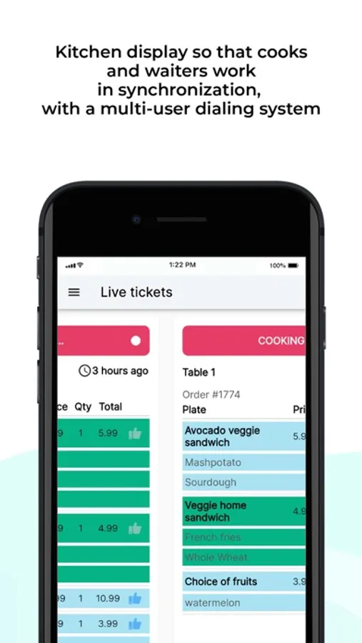 More than a screen, it is a collaborative work tool between cooks and waiters, it improves communication and teamwork.