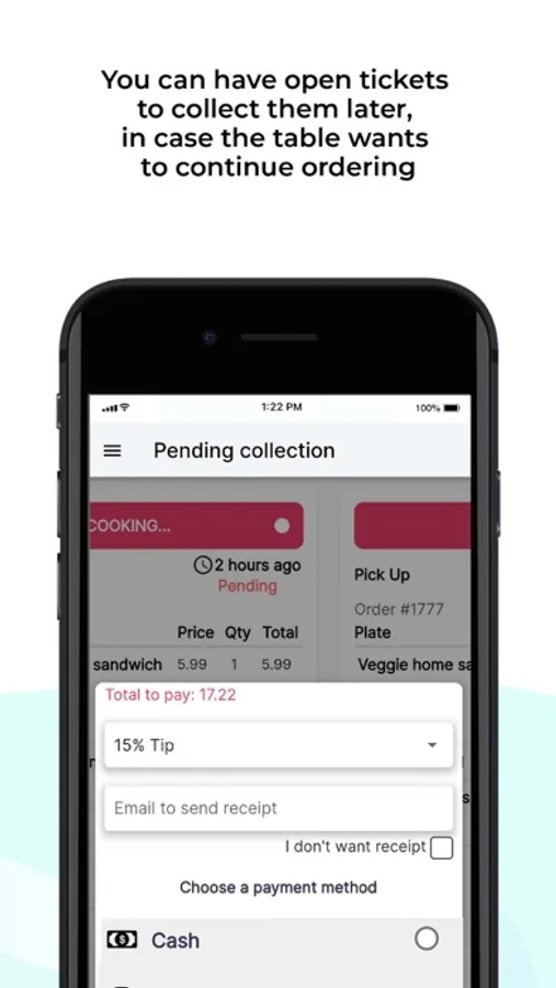 The waiters can take orders, send the order to the kitchen and charge until the end, for example, a sushi restaurant that first serves the food and customers pay at the end