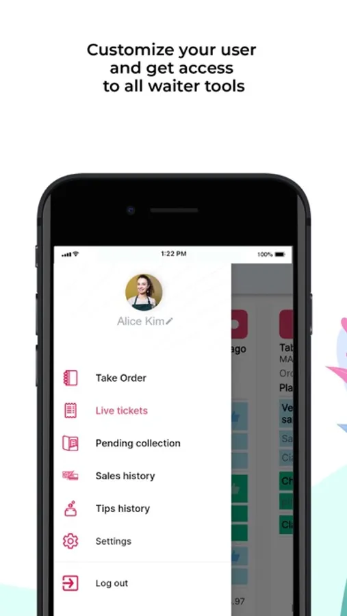 Or you can also assign a different account on different Displays for each waiter, ideal for large teams. to cover large working distances.