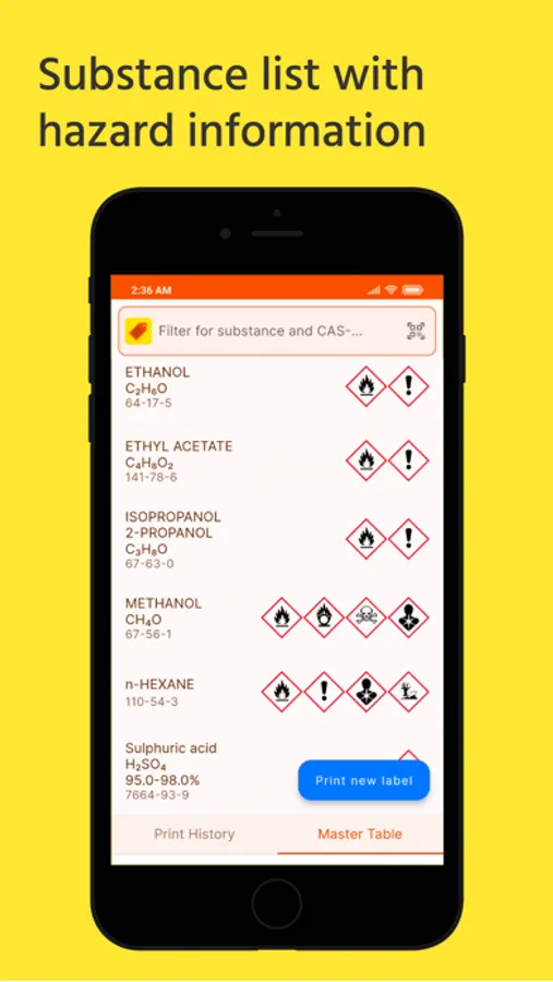 • Substance lists with hazard information can be stored as a spreadsheet.