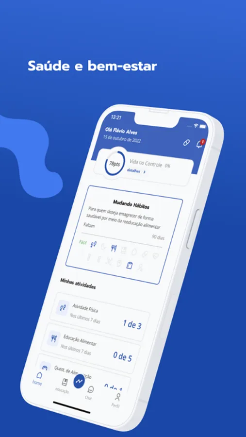 Inicie a sua jornada selecionando 4 diferentes trilhas, que são: Bem-estar mental (mente e corpo em sinergia), obesidade (chega de brigar com a balança!), doenças crônicas (controle sua glicemia e pressão arterial) e bem-estar físico (qualidade de vida independentemente da sua condição física e mental).
