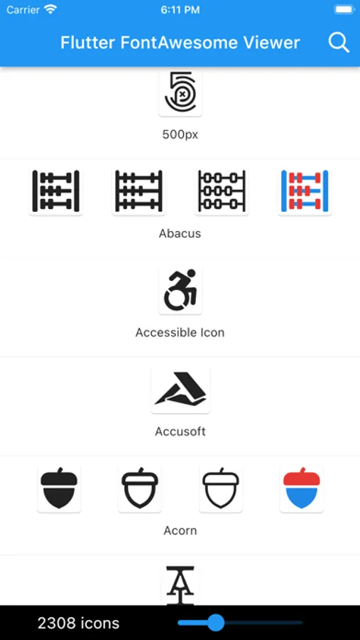 Flutter Fontawesome Viewer Screenshots