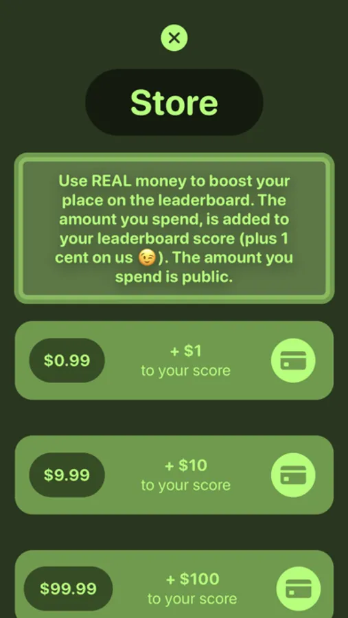 The amount you spend will be added and displayed on the leaderboards so others can see how much it costs to be on top!