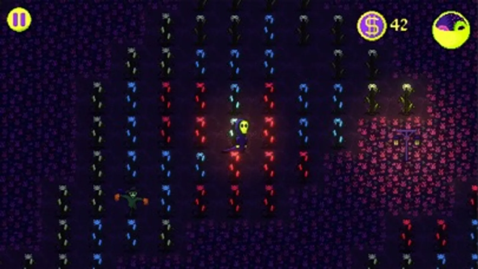 The Green Reaper spends his ethereal nights harvesting the souls of plants that died during the day. Buy upgrades for your gear and pay for new plants to die and arrive in your field. Work your way through your nightly tasks and live the ideal ghost farming life.