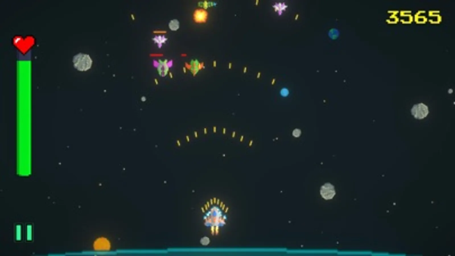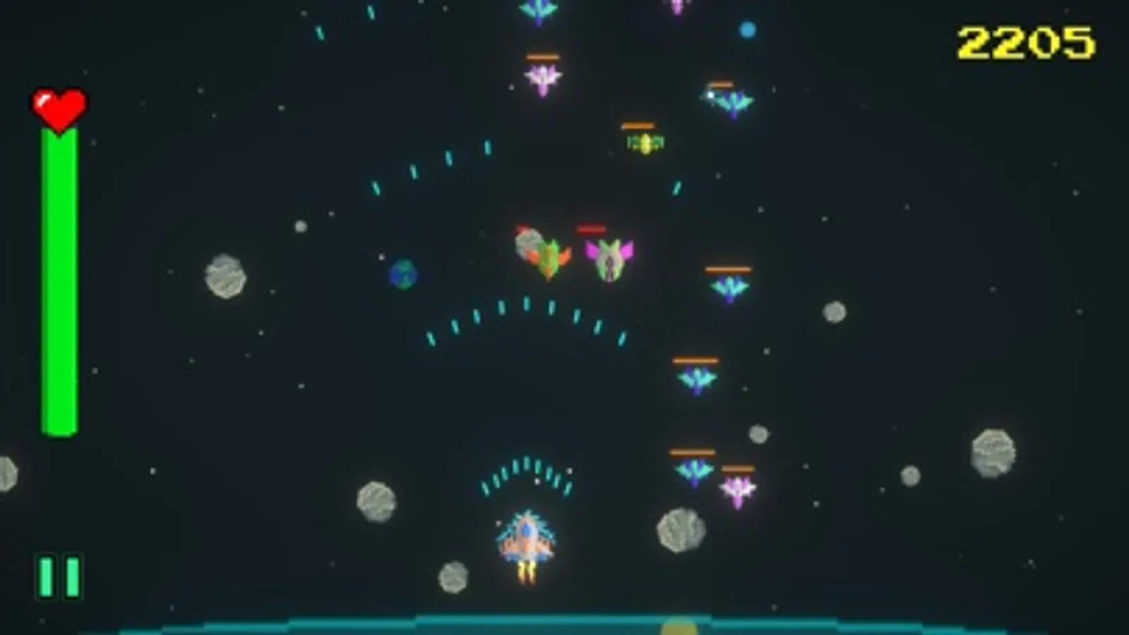 Shoot down alien space ships of 5 different types, each with it's unique stats and powerup drops.