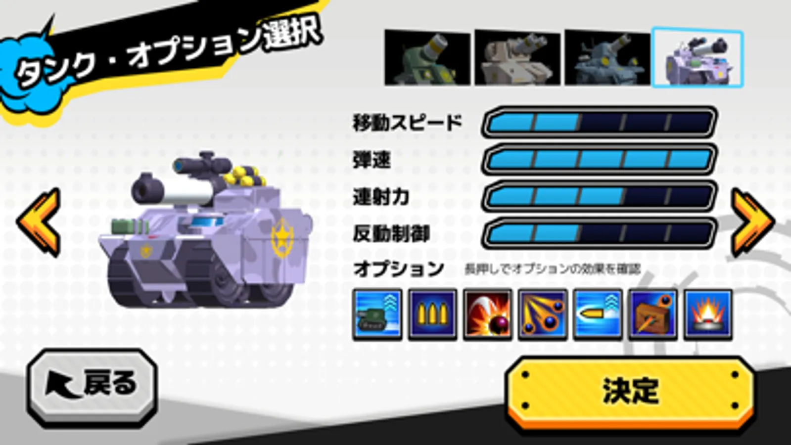 個性豊かな4つの戦車から好みの戦車を選んで、いざ出陣!