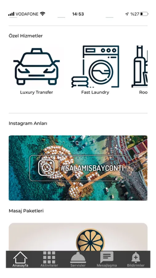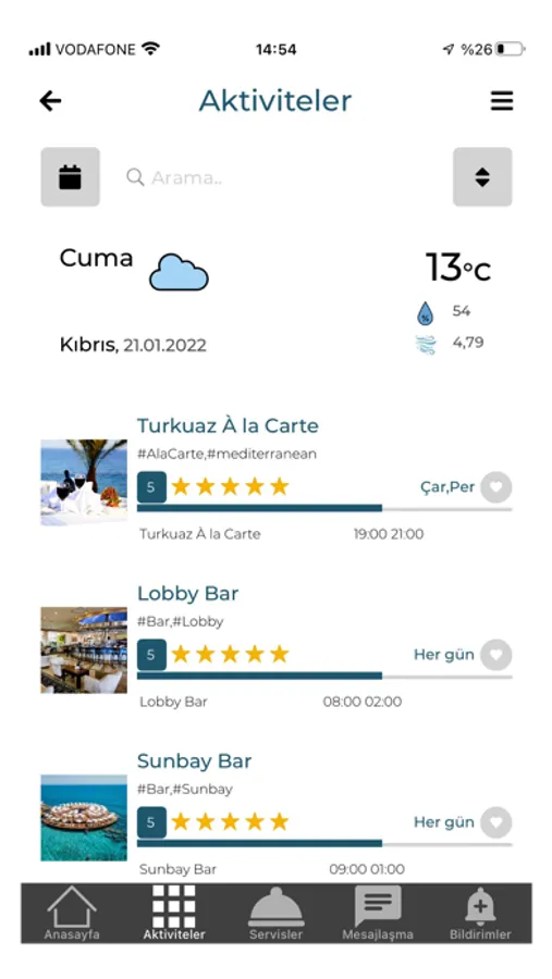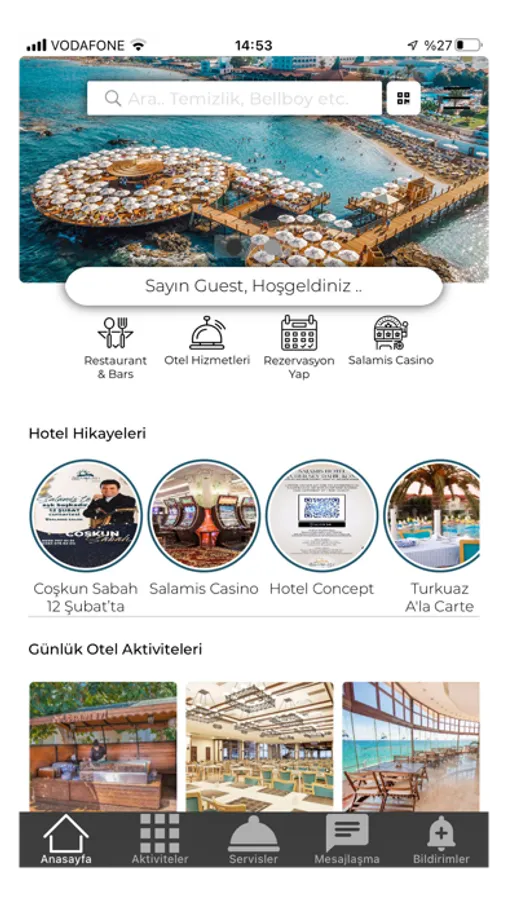 Stay up to date with events, activities and services at the resort. Make your online check-in and transfer reservation before your stay. During your stay, send your requests, complaints and reservation requests to the hotel and be informed about the status of your requests. Get instant answers to your questions by contacting the hotel support line. Stay informed of daily events and activities with notifications. Your comments and suggestions are important to improve hotel operations. Submit your comments and suggestions to the hotel with satisfaction surveys.
