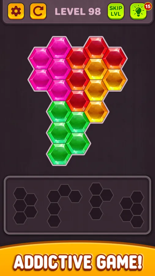 Try our new highly addictive unique hexagonal pieces puzzle game!