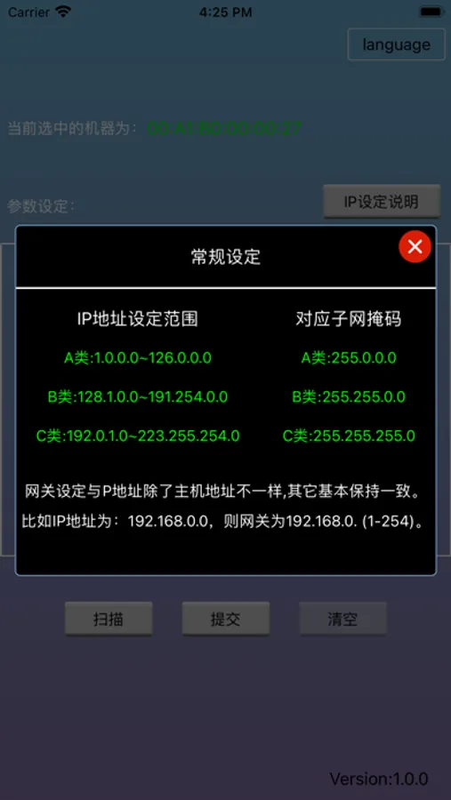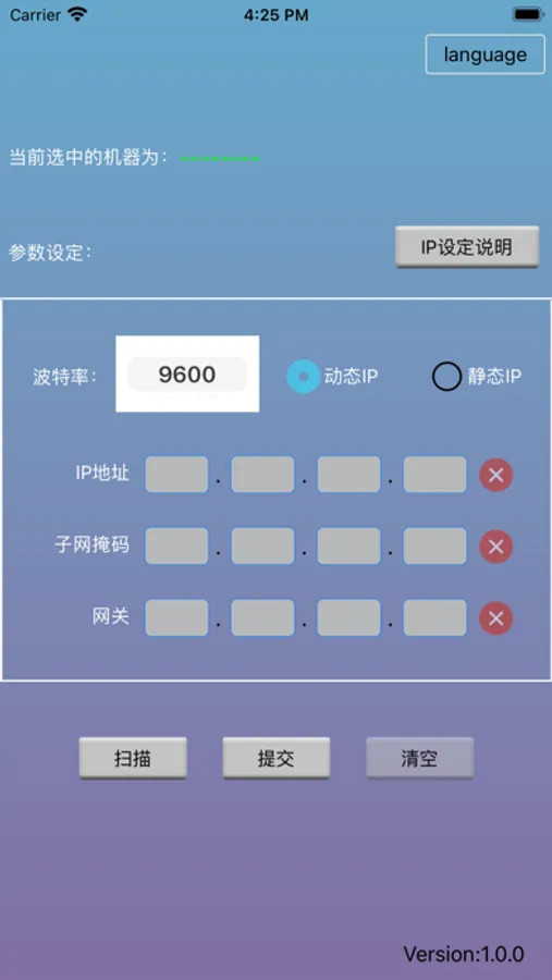 用于W5500网口的配置,可修改网口的IP地址、默认网关、子网掩码和波特率。