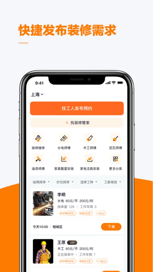 云快班APP装修管家平台,是由上海云快装网络科技有限公司自主研发的装修类信息应用平台,专注装修全程管理、装修人工清工、房屋翻新维修;同城设计、建材引流共享服务。国内首家全透明化管家式装修平台。解决了装修行业用工信息差严重、装修不透明、效率低、成本高、从业人员没有归属港湾等痛点。通过云快班APP平台,为用户匹配推送最佳装修管家(项目经理)、师傅、引流共享更优质的同城设计建材。装修管家(项目经理)、师傅、设计、建材也可在平台上发布接单引流,大大提升了装修效率、降低了装修成本。