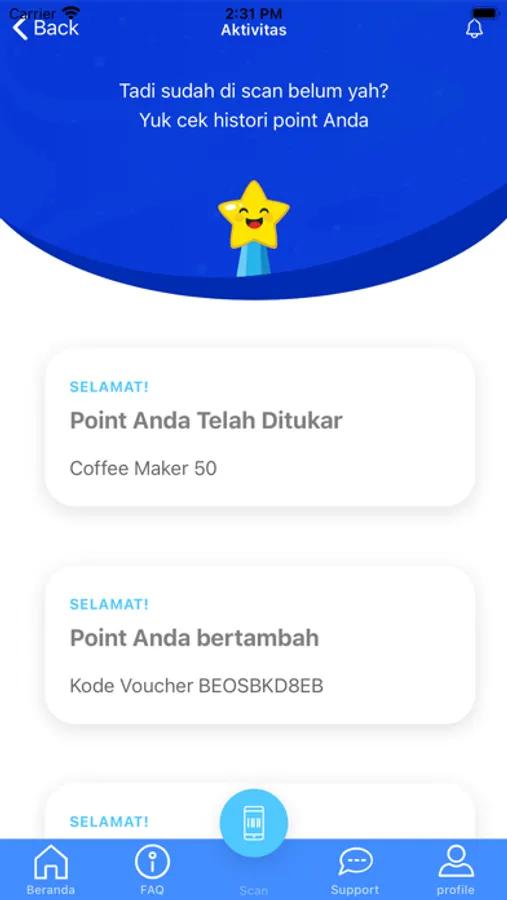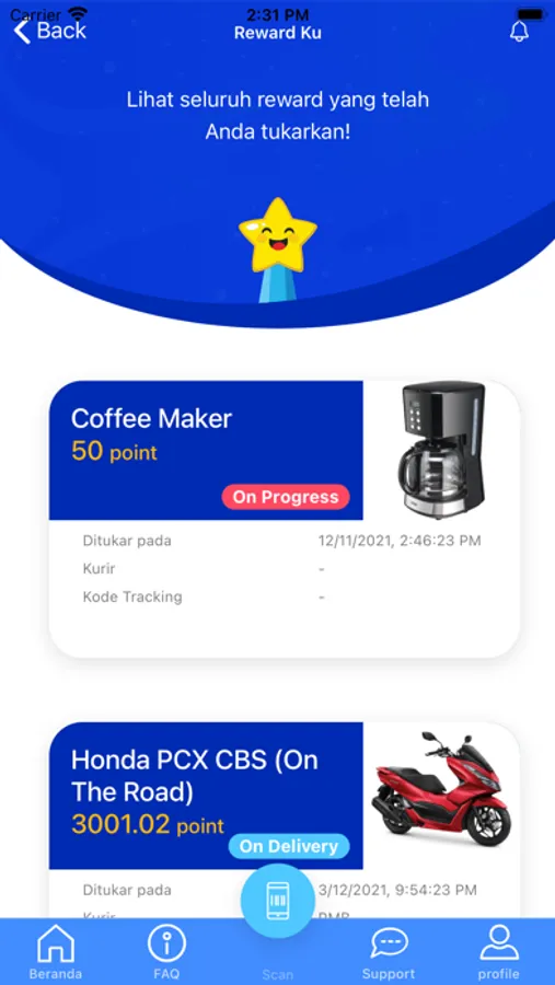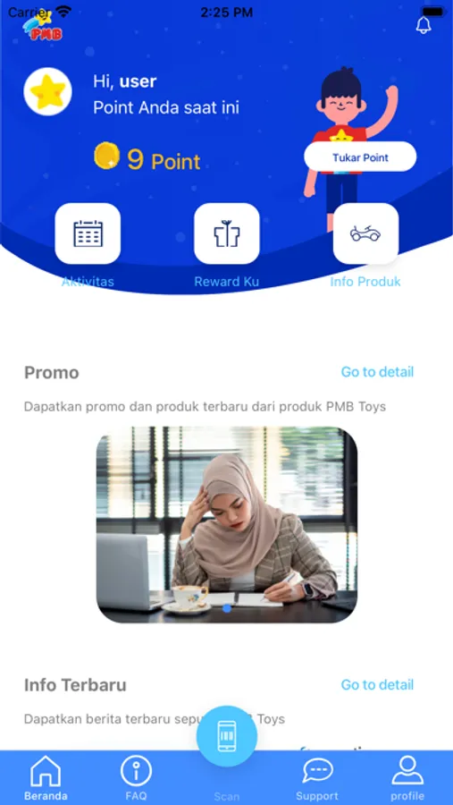 Dapatkan poin kupon untuk setiap pembelanjaan produk dari distributor PMB Toys. Tukarkan poin dengan berbagai hadiah menarik dari travel, elektronik, hingga kendaraan. Scan barcode di kardus setiap produk PMB Toys untuk menambah poin.