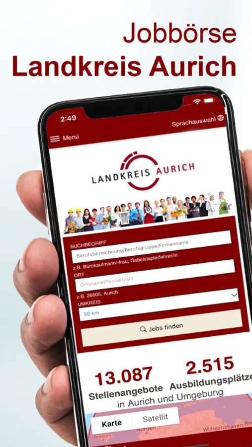 Der Landkreis Aurich unterstützt ab sofort Ihre Jobsuche auch per Smartphone. Mit der neuen kostenlosen und DSGVO-konformen Jobbörsen-App finden Sie tagesaktuelle Arbeitsplatzangebote aus dem gesamten Kreisgebiet. Das Angebot reich von Vollzeit- und Teilzeitstellen über Minijobs bis hin zu Ausbildungsplätzen in der Region.