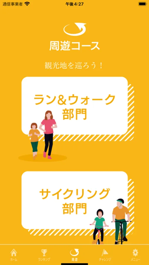旅スポオンラインマラソン・サイクリング大会アプリは 、熊本県内の観光地や 自分の好きな場所で、走る・歩く・サイクリングすることで熊本県の特産品が抽 選で当たるオンラインによるマラソン・サイクリング大会専用アプリです(参加 料無料)。