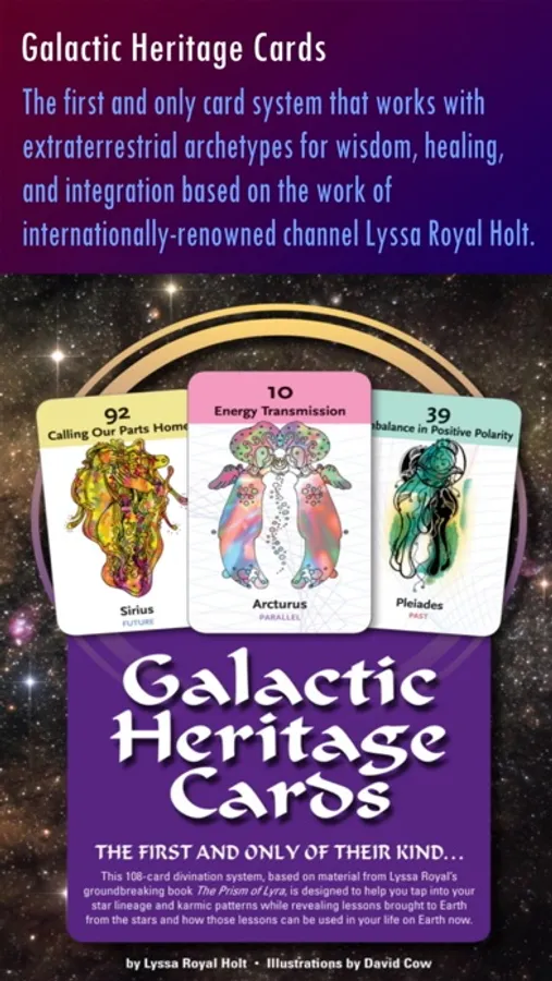 This 108-card divination system, based on material from Lyssa Royal Holt's groundbreaking book The Prism of Lyra, is designed to help you tap into your star lineage and karmic patterns while revealing lessons brought to Earth from the stars and how those lessons can be used in your life on Earth now.