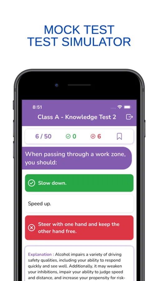 - Exceptionally large set of practice questions which covers every aspects of the driver’s license test.