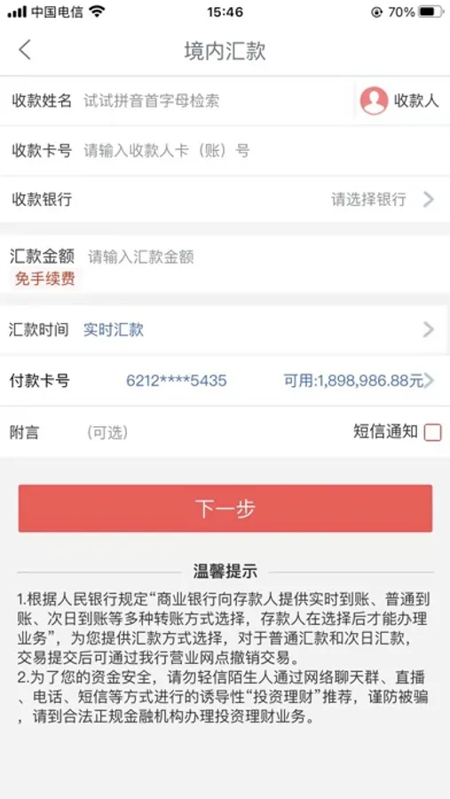 3、使用方便:为您提供7*24小时全天候的服务,无论何时何地、均可通过手机轻松管理账户、转账支付。