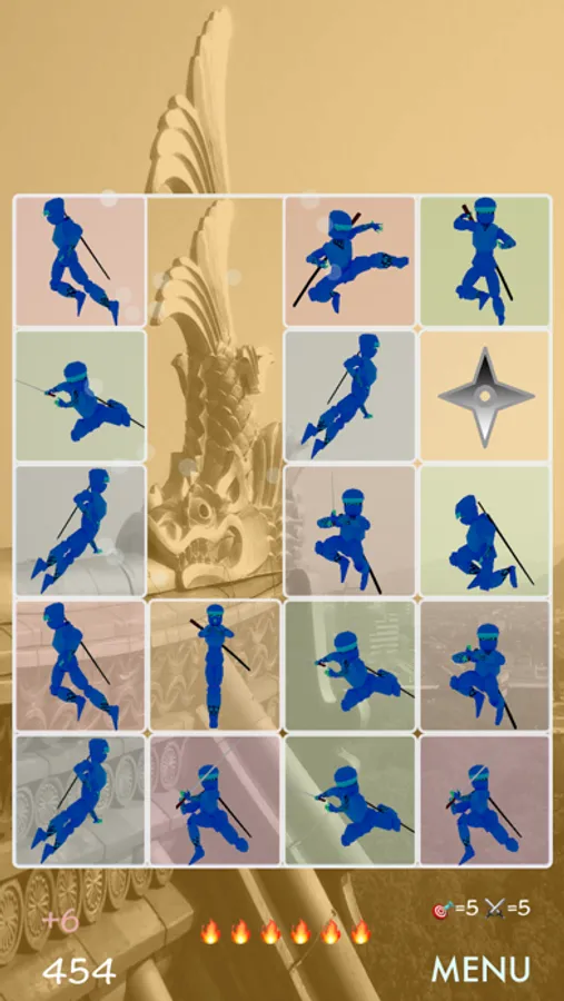 Move blocks up, down, left, and right to make three or more of them disappear. Each time you move them, one flame is consumed. When the flame runs out, the game is over.