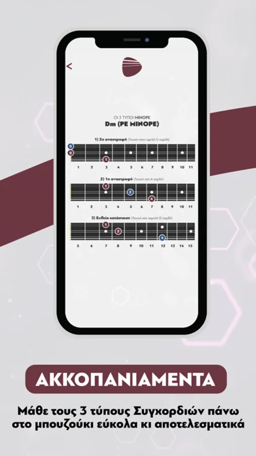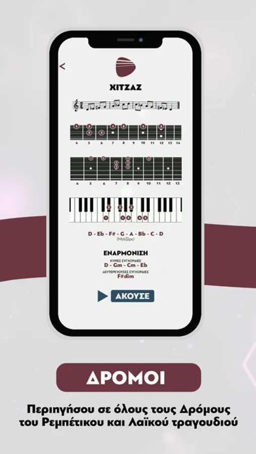 Περιηγήσου σε όλους τους Δρόμους του Ρεμπέτικου και Λαϊκού τραγουδιού, στους πιο διαδεδομένους Ρυθμούς/Χορούς του Ρεμπέτικου, Λαϊκού καθώς και Δημοτικού τραγουδιού και μάθε τους 3 τύπους Συγχορδιών πάνω στο μπουζούκι εύκολα κι αποτελεσματικά, από το κινητό σου εντελώς δωρεάν!