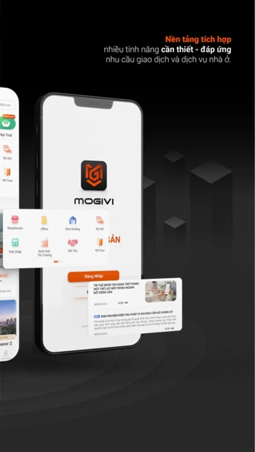 App Mogivi Client - Đáp ứng mọi nhu cầu của khách hàng về dịch vụ giao dịch, cho thuê, mua bán bất động sản