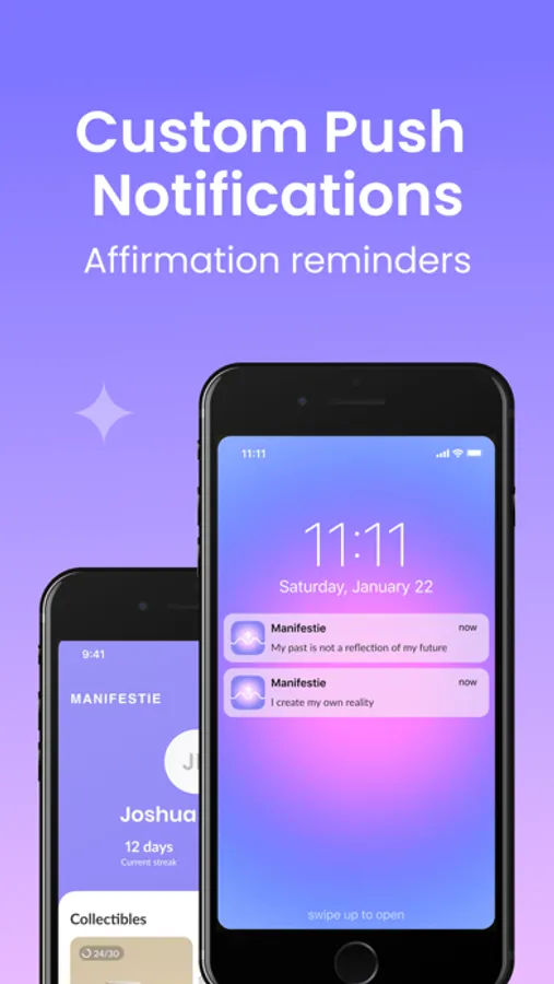Set daily notification reminders with positive affirmations to trigger daily abundant thoughts and keep you on track with your manifestations. Turn your phone into your abundance buddy and receive notifications you actually want to see.