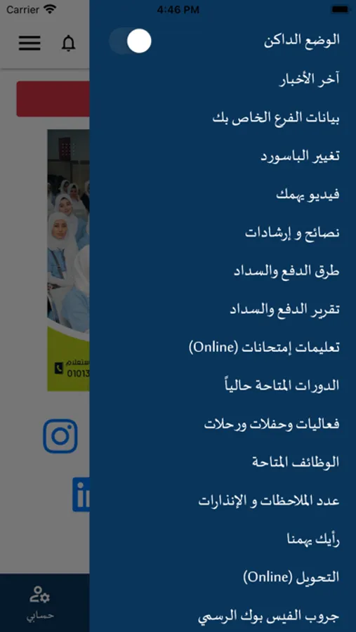 يعرض التطبيق : المحاضرات / فرص العمل والتوظيف / نتائج الامتحانات / تقديم الدورات والبرامج والدبلومات / التوعية / نتائج الحضور والغياب / اقامة الإمتحانات وغيرها من الخدمات الأخرى