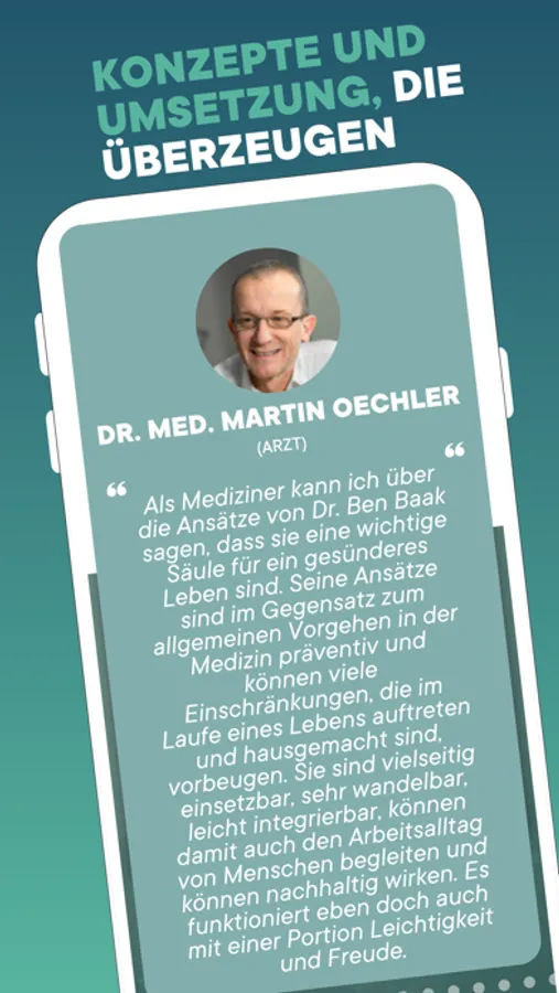 Mit den Konzepten von Dr. Ben Baak wird dein Alltag einfach gesünder. Mit wenigen Minuten deiner Zeit und den Inhalten dieser App nehmen Ausgeglichenheit, Leistungsfähigkeit und Lebensqualität spürbar zu.