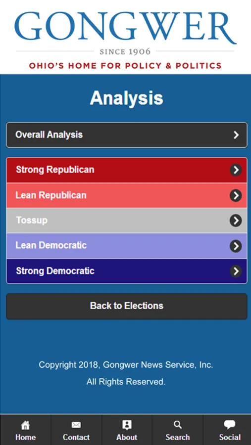 Download the 2022 Ohio Elections app for your one-stop source for information on state and federal elections in Ohio. Powered by Gongwer News Service, Ohio’s most trusted independent news source on state government and politics, the app allows users to easily access information about candidates for the General Assembly, Congress and statewide offices.