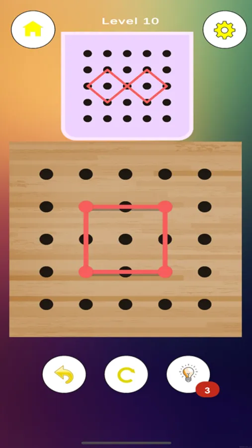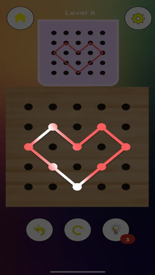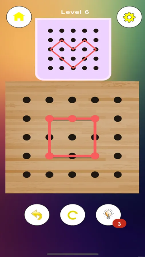 After connecting dots, you will have wonderful shapes and patterns, but to do that and make the exact shape, you must divide the line of string into two line then create connecting points between those two lines, you don’t pass level until you link two dots and cover the entire board with a beautiful shape.