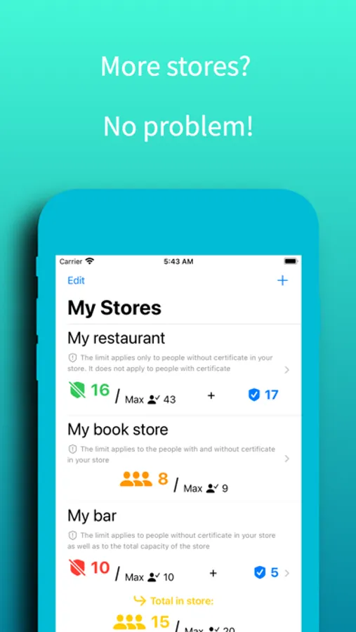 The maximum capacity in free version is reduced to 20 guests, but with premium packages allows you to count up to 2000 people inside one store.