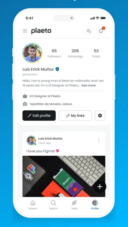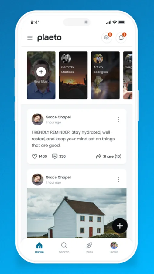 The Plaeto app gives you the power to change what you see in your Stream, endless content with Tales, authentic conversation opportunities in Chambers, the ability to send your thoughts out on Blasts, and a Profile you actually control.