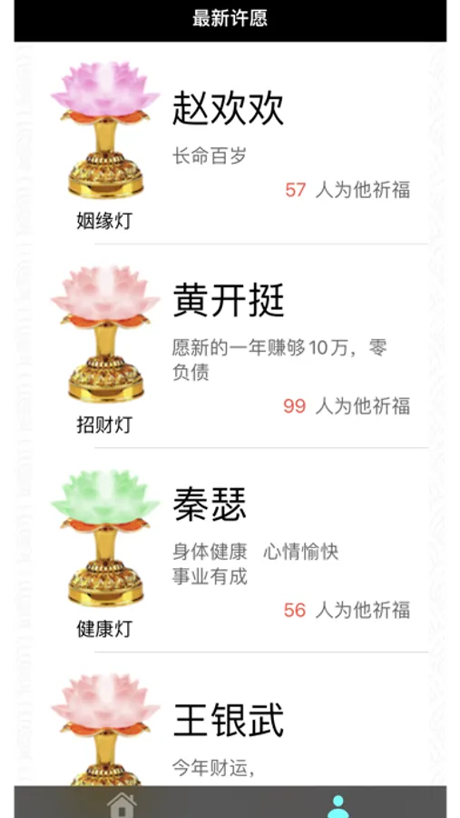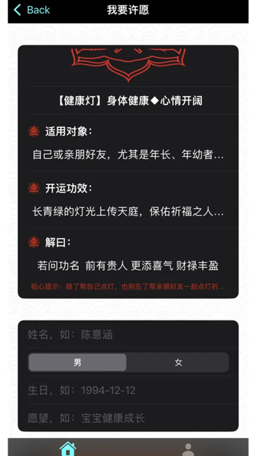 祈福、许愿。许愿点灯,为您及您的亲朋好友点灯许愿,有助身体健康,财源广进,逢凶化吉,福气延绵!