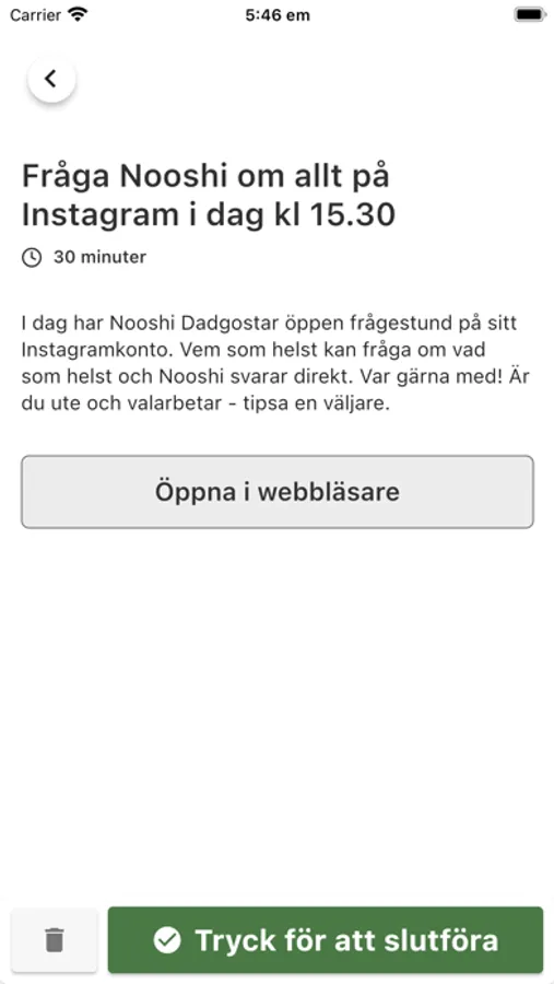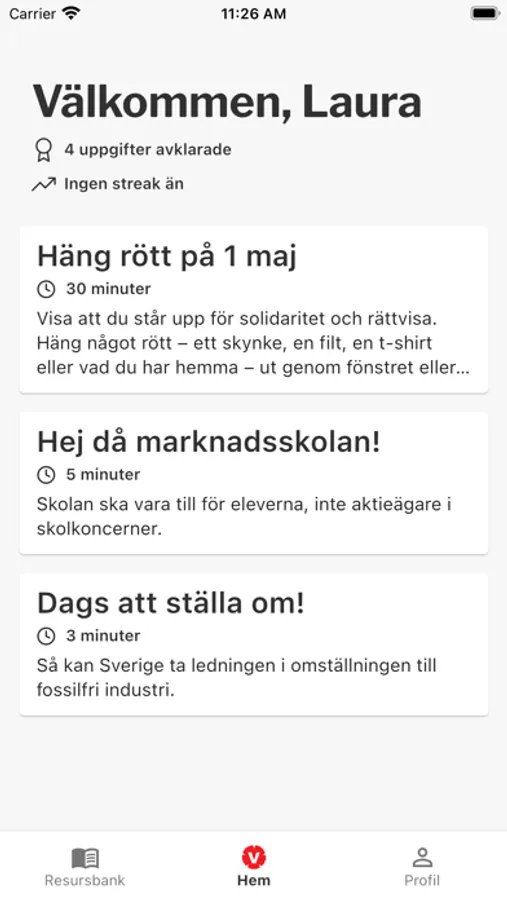 Genom appen får du notiser om små och stora uppgifter du kan göra. Det kan handla om att gilla och sprida en text, dela en bild i sociala medier eller bjuda in vänner till ett event. Du utför uppdrag - stora och små - i den takt du själv väljer. Du behöver självklart inte vara medlem i Vänsterpartiet för att använda appen. Alla som vill göra en insats är välkomna!