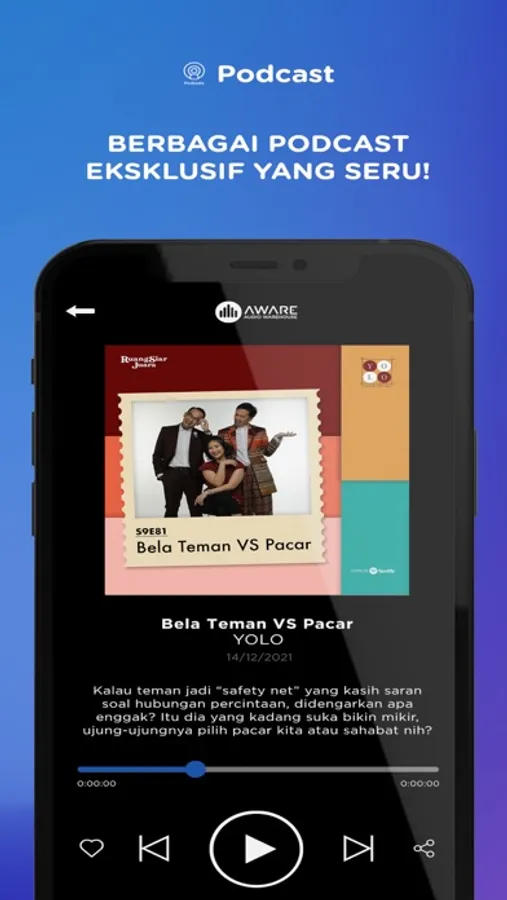 Dengarkan siaran radio dari penyiar favoritmu dalam satu aplikasi! Nikmati juga berbagai podcast eksklusif dan artikel audio yang bisa dipilih sendiri! Dapatkan juga kupon dan hadiah menarik setiap saat! Semuanya GRATIS!