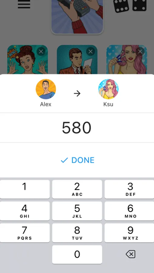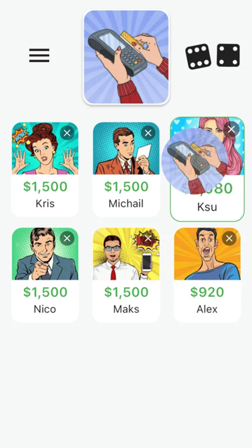 To transfer money to another player, simply drag your figure onto his figure with your finger and indicate the amount. The bank works the same way. To pay the bank, drag your piece to the bank field.