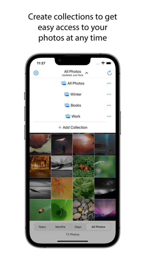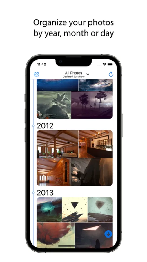 - Access photos by years, months or dates;