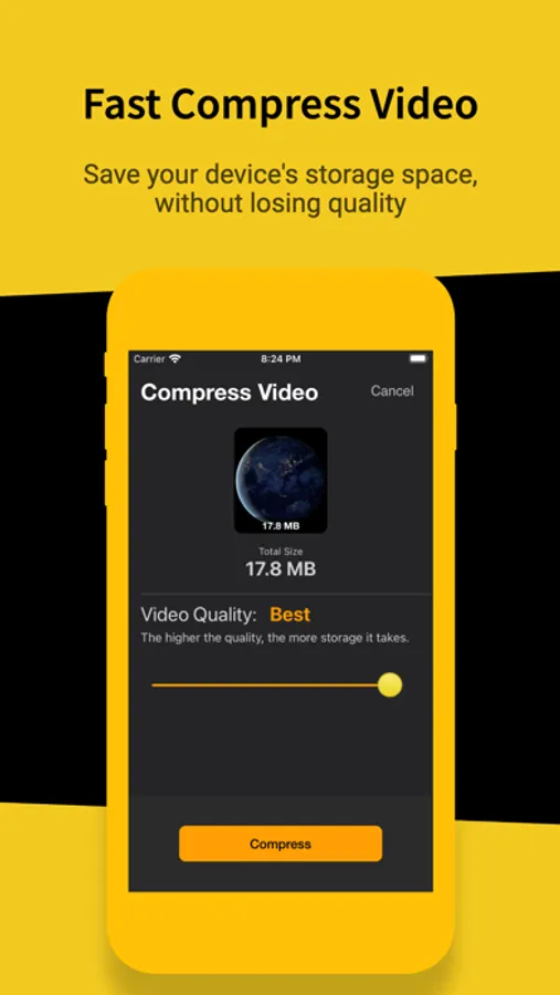 Install Video Compress and reduce video size keeping same video quality & share anytime and anywhere.