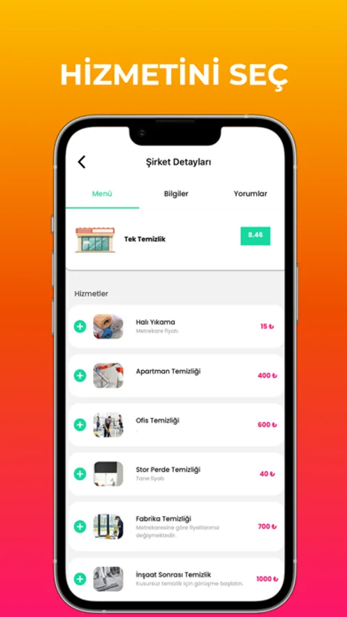 Hizmet Marketi üzerinden Bay/Bayan Kuaföründen, Temizlik ve Halı Saha'ya kadar 50’den fazla sektörde hizmet sağlayan profesyonel şirketlere rezervasyon oluşturabilirsiniz.Hızlı gelişen bir pazarda rakiplerimizden daha önemli hamleler yaparak bütün müşterilerimizi kurumsal iş yerleri ile bir araya getirip güvenli ve kaliteli hizmet almasını sağlamaktayız.