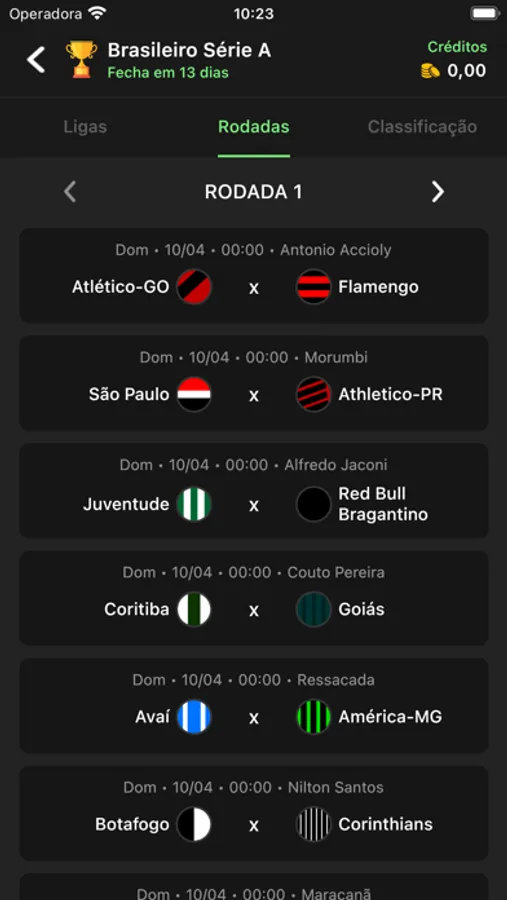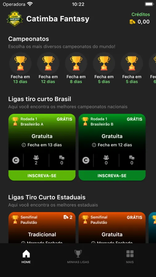 - Escolha a competição, são diversas opções disponíveis em diversos campeonatos