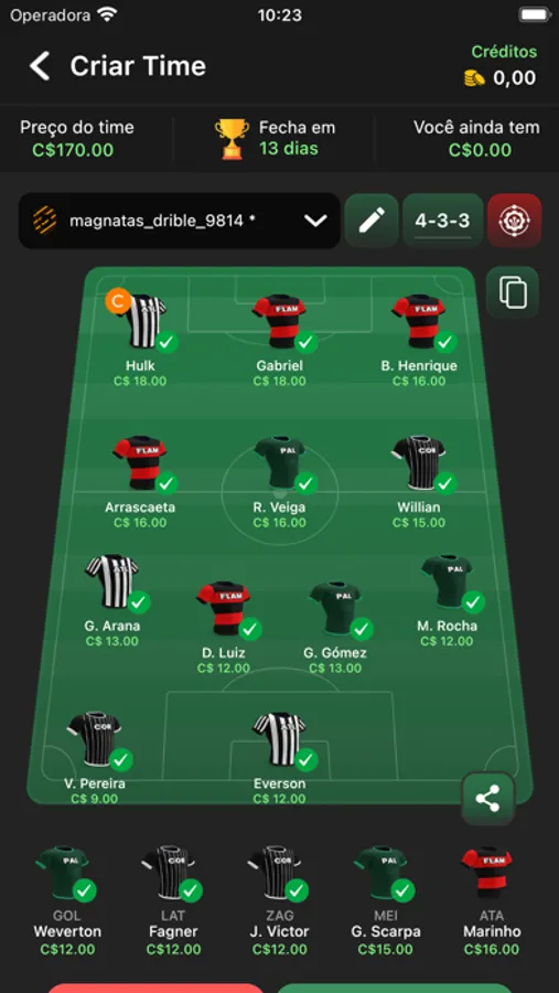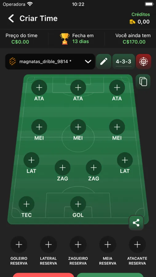 - Faça suas escalações de acordo a sua estratégia, monte quantos times quiser de acordo com seus recursos disponíveis