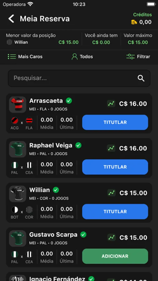 - Banco de reserva que você pode escalar inclusive jogadores mais caros que os titulares de acordo com seus recursos no jogo.