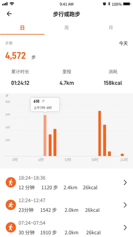 3,记录运动时间、次数、步数、频率、卡路里。