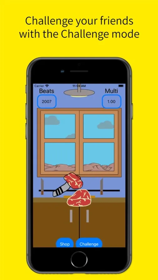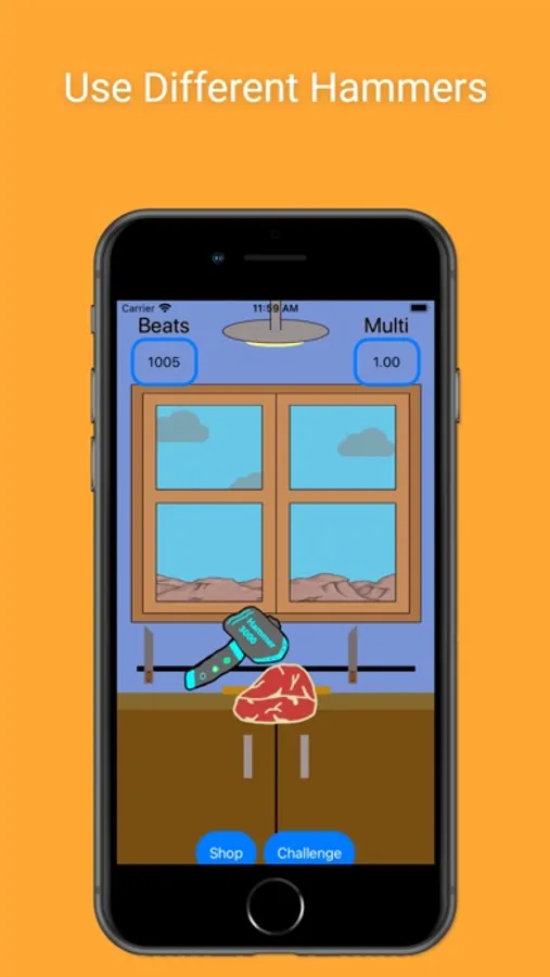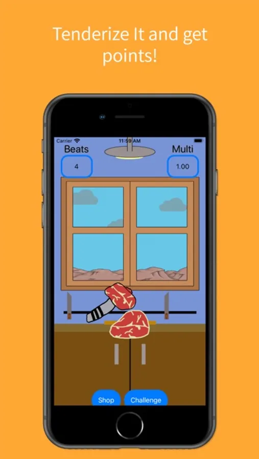 Tenderize It is a game where you repeatedly hit a slab of meat with a hammer. You collect points to buy more hammers and backgrounds. Some hammers do different things, while some are completely cosmetic. There is also a challenge mode where you can challenge your friends with a live leaderboard!