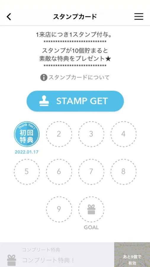 たくさん貯めていただくと次回使える特典をご用意しております。