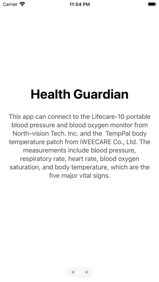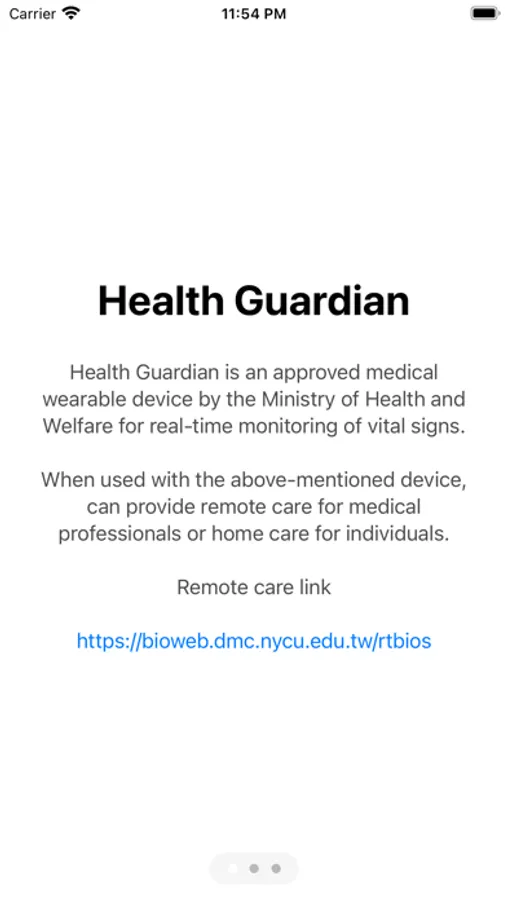 Health Guardian is an approved medical wearable device by the Ministry of Health and Welfare for real-time monitoring of vital signs.When used with the above-mentioned device, can provide remote care for medical professionals or home care for individuals.