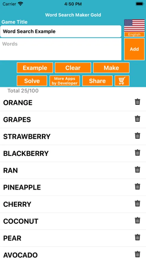 Make Word Search Puzzle with Custom Word List for maximum 40x40 size.