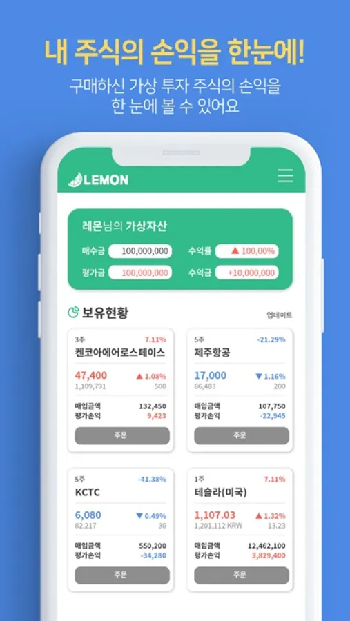 가계부를 활용한 주식추천, 가상 투자를 통한 자산관리 제테크 앱, 레몬