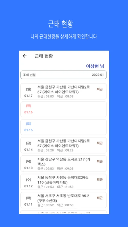 (주)윌두애서 제공하는 근태/급여 서비스애 대한 모바일 플렛폼 S/W입니다.